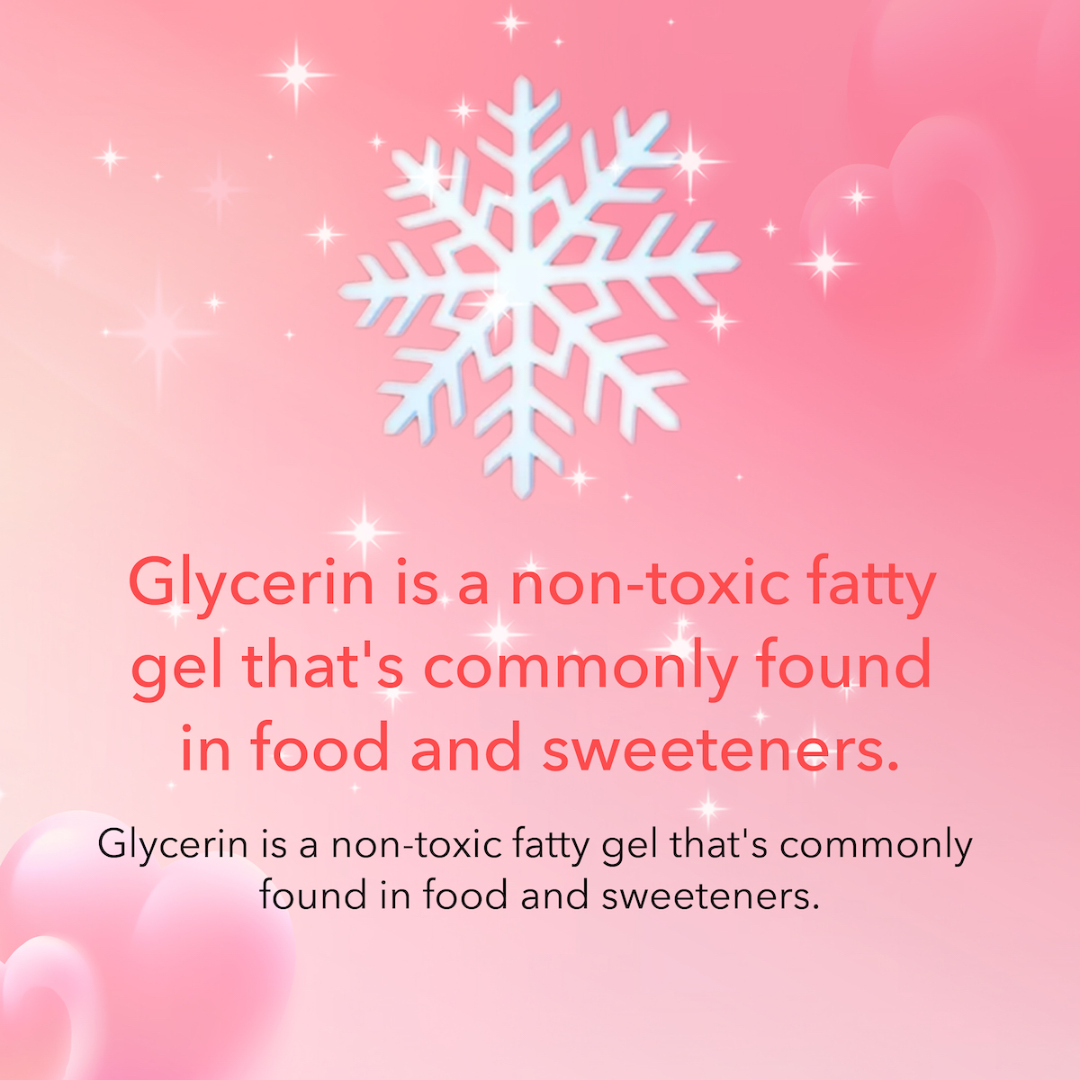 Glycerin is a non-toxic fatty gel that's commonly found in food and sweeteners.