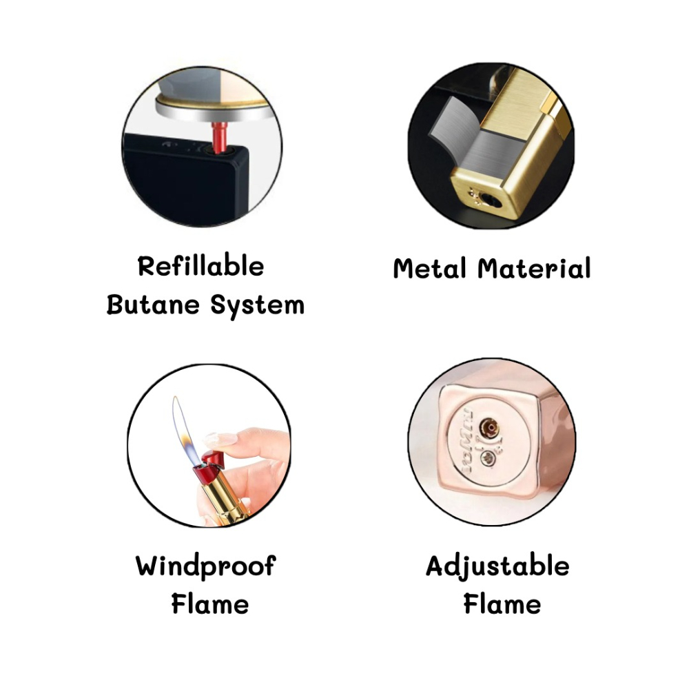 Diamond-inset Windproof Butane Lighter (Butane Gas Not Included)